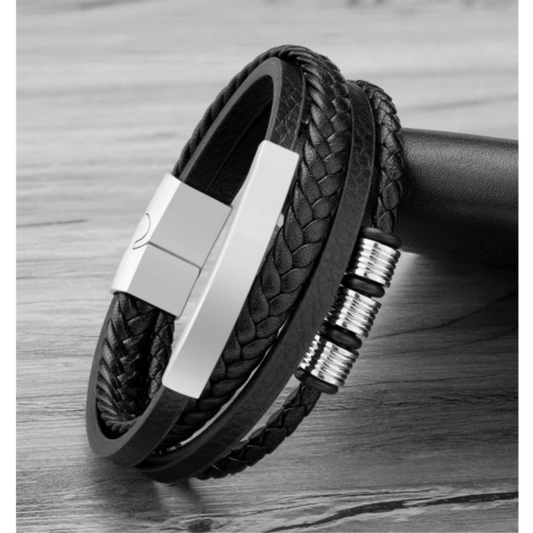 PULSERA MIDNIGHT SILVER ESSENCE (CUERO GENUINO)