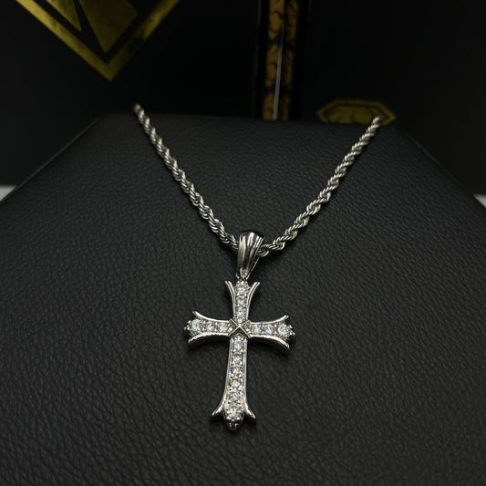 COLLAR CON DIJE DE CRUZ DORADA (ACERO INOXIDABLE 316L y BAÑADO EN ORO DE 18K)