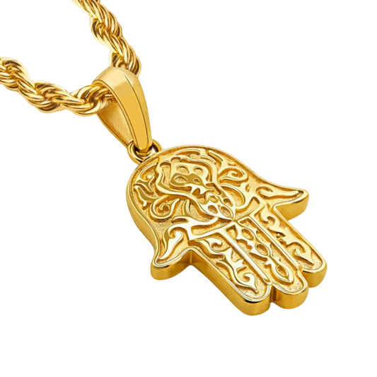 COLLAR HAMSA (ACERO INOXIDABLE 316L Y BAÑADO EN ORO DE 18K)